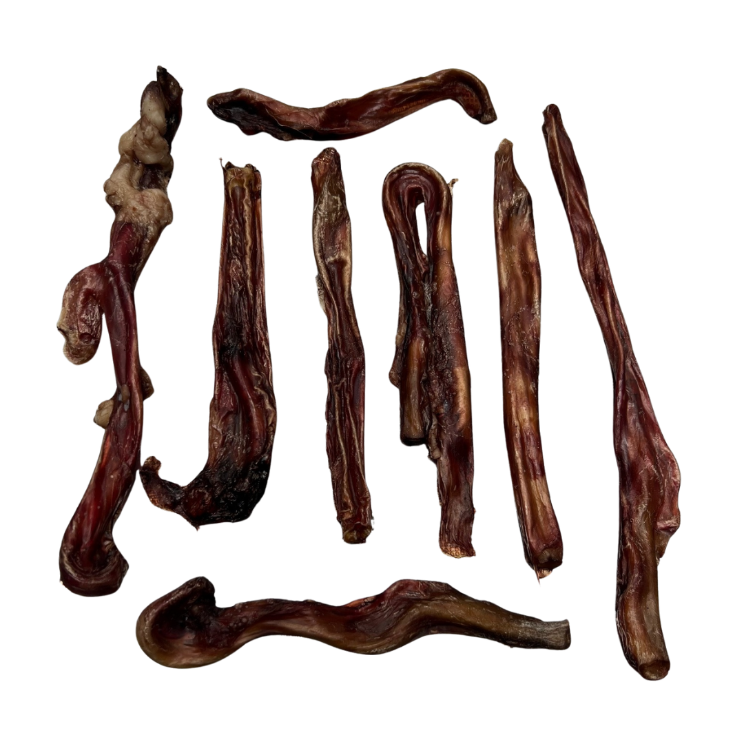 Whether you’ve got a small puppy, a big chewer, or just want a healthy alternative to processed dental sticks full of crap, bull pizzles are a tried-and-true favourite in the raw feeding and natural dog treat world.