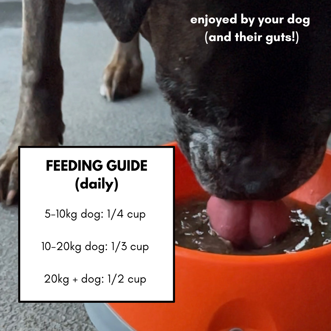 To really get the gut healing benefits of bone broth we recommend the following serving but keep in mind that every dog is different and you know your dog best so feel free to give a little more or less accordingly :)